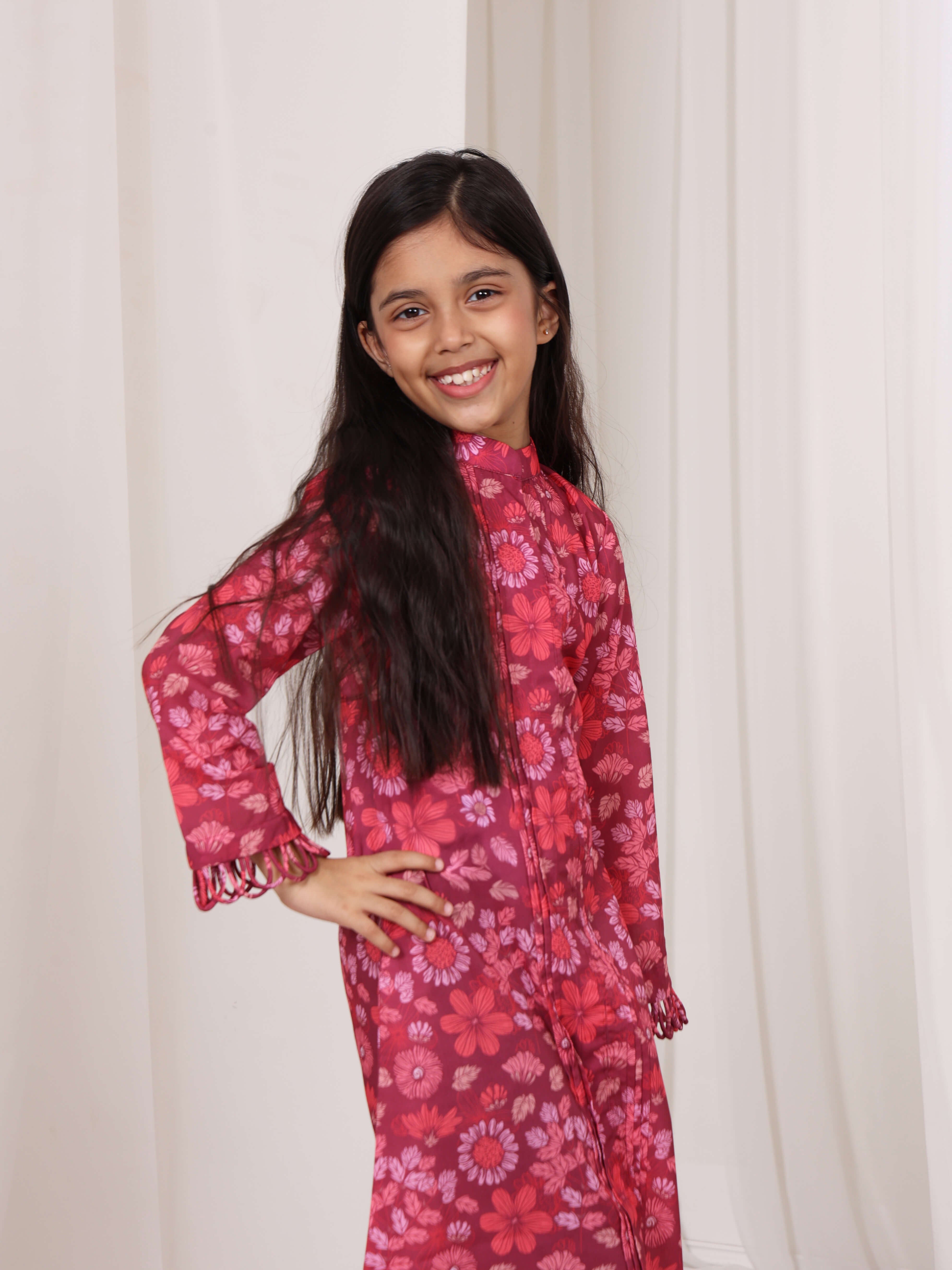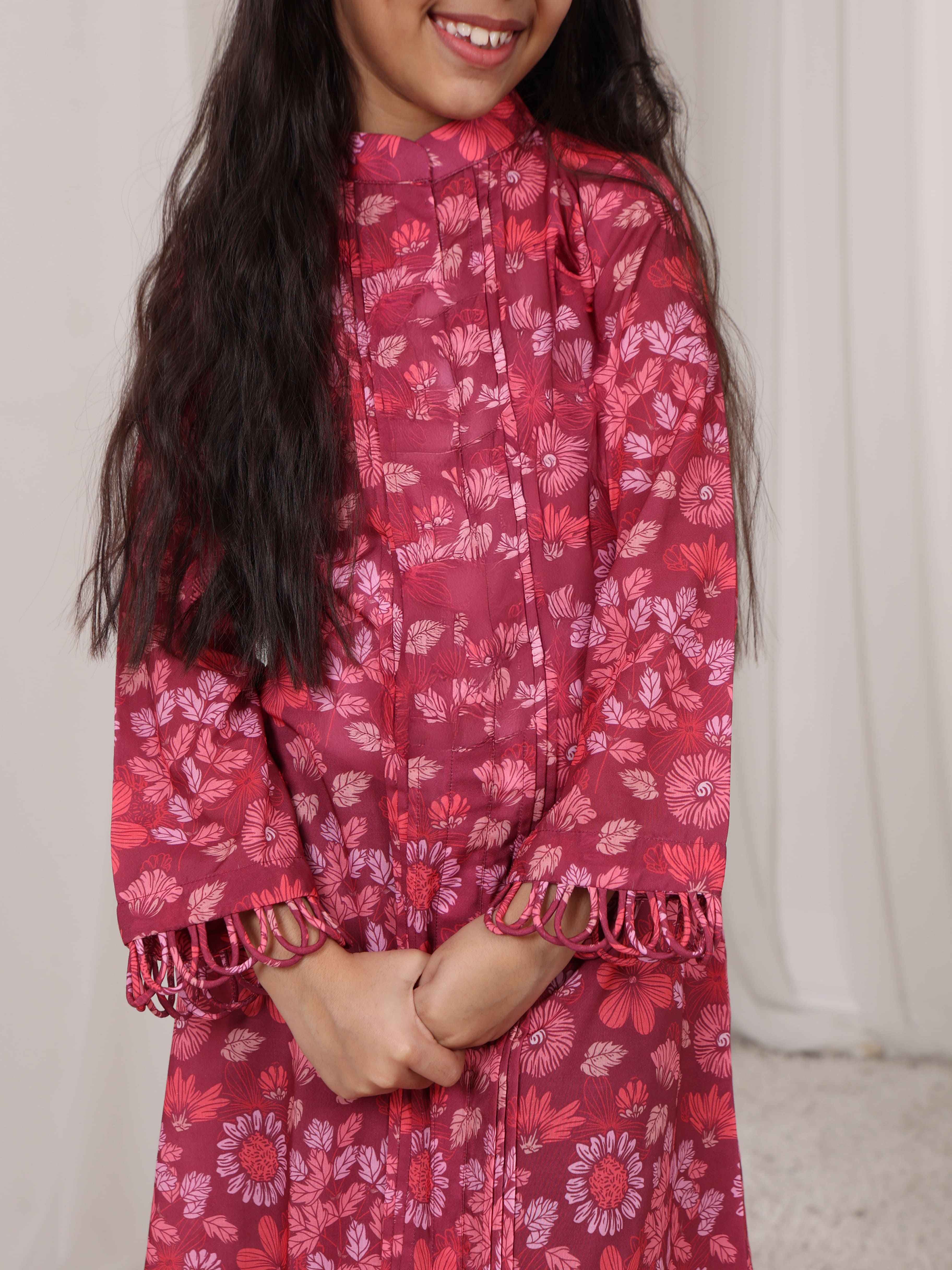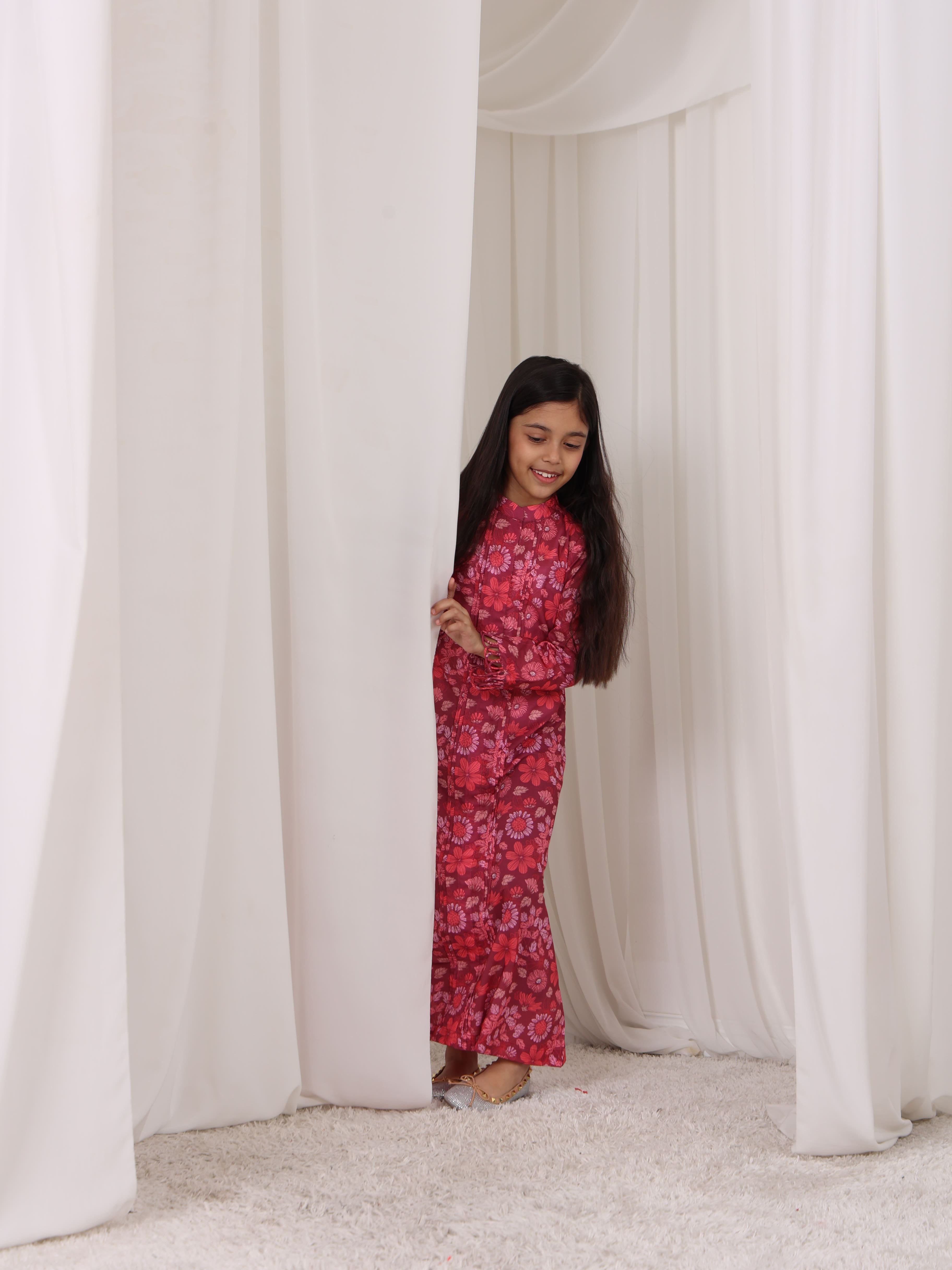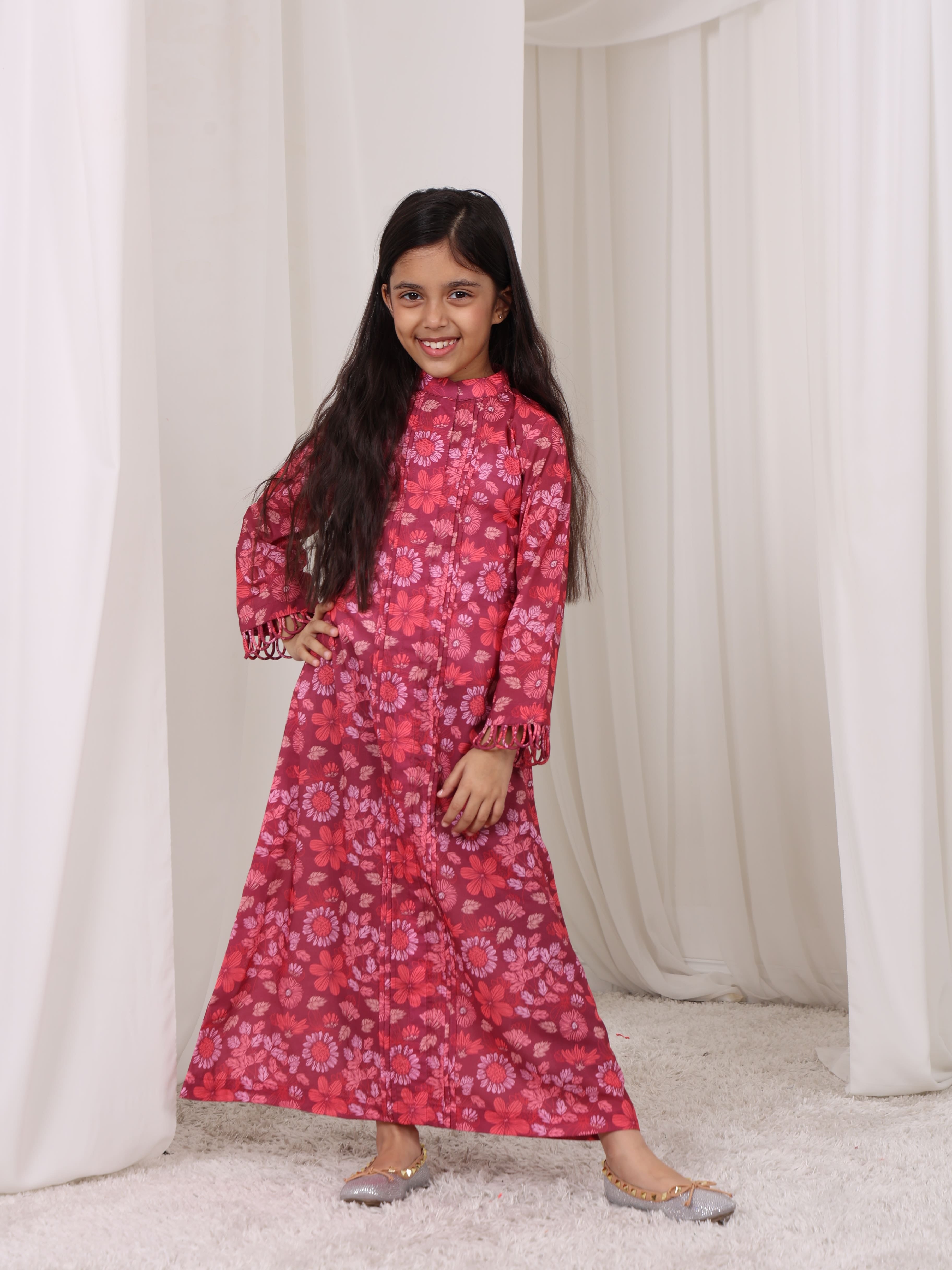 Radiate effortless grace with our Rose Floral Jalabiya, crafted from lightweight and breathable Polyvoile fabric that offers a soft, flowy drape and all day comfort. The deep rose pink base is beautifully adorned with floral patterns in shades of blush and coral, creating a romantic and feminine look.